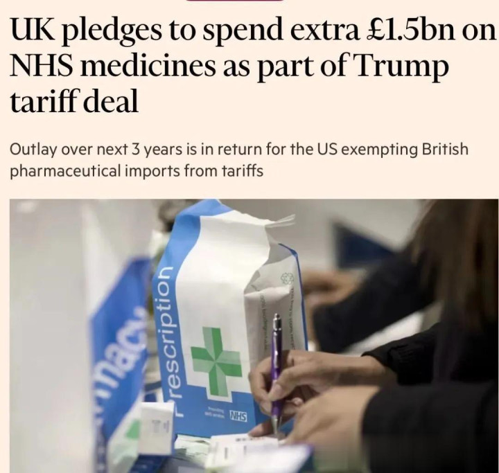 据金融时报报道,为换取美国总统特朗普政府对英国药品进口可能征收的关税豁免,英方同意将药品支出从目前占GDP的 0.3% 提高至0.35%,换算为约15亿英镑。这一目标预计将在2028年底前完成。