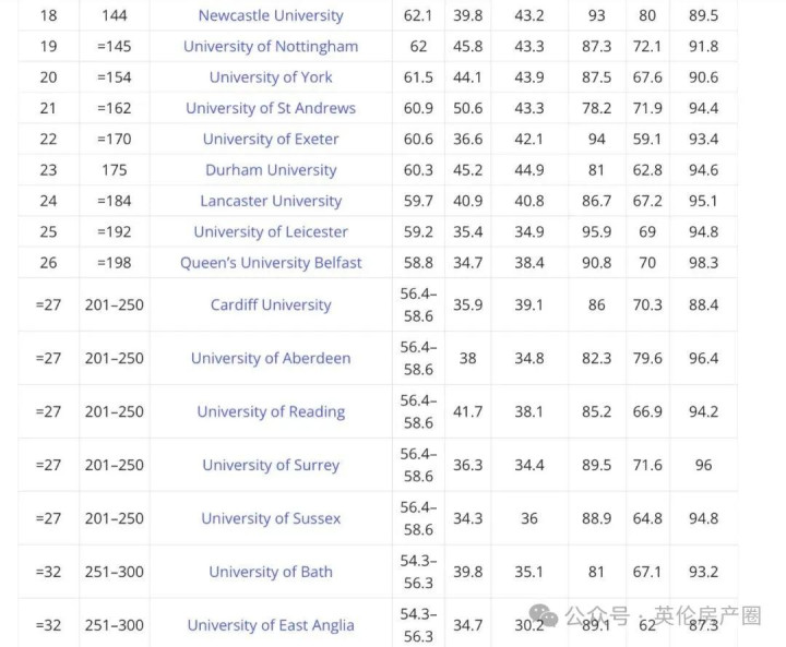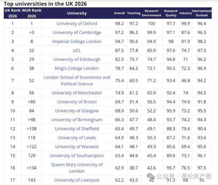 除了牛津和剑桥,帝国理工、UCL、爱丁堡、King’s College London、LSE、曼彻斯特等多所英国大学都稳居全球前 100 名或附近位置,显示出英国高校整体科研与国际影响力仍很强。